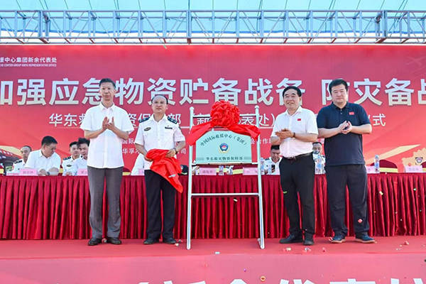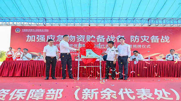 国家发改委及有关领导为中国囯际救援中心(集团)华东应急救援物资保障部新余代表处成立授牌时的情景。